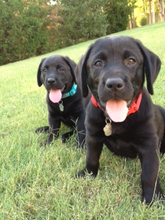 2 girl black labrador retriever puppies. Yes, they have that puppy smell.